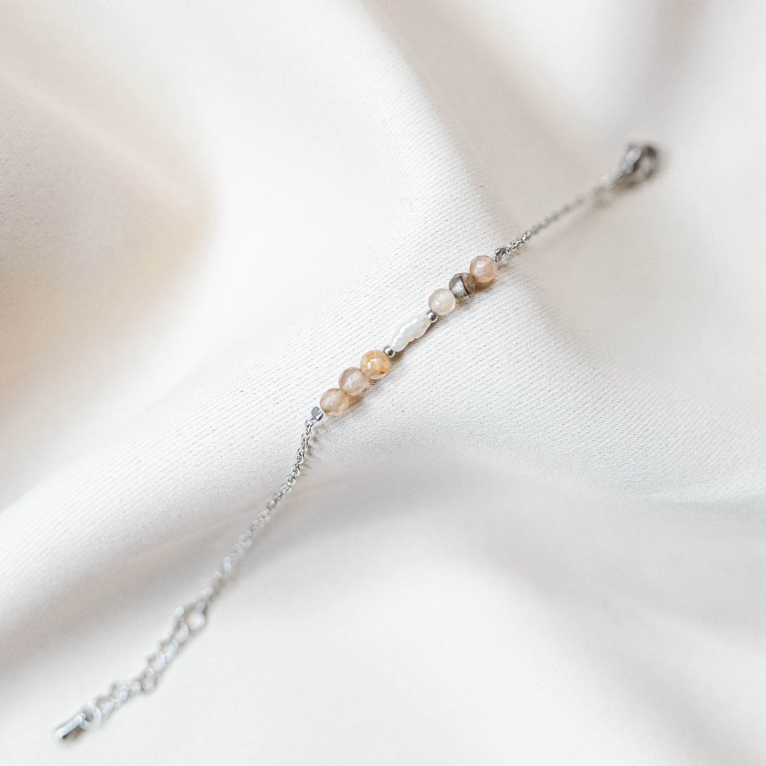 Kristályok: rusztikus gyöngy, citrin, achát.